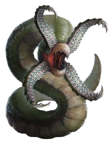 - A monstrous snake like creature with a tentacles and a beak on its face drops from the ceiling and prepares to attack!