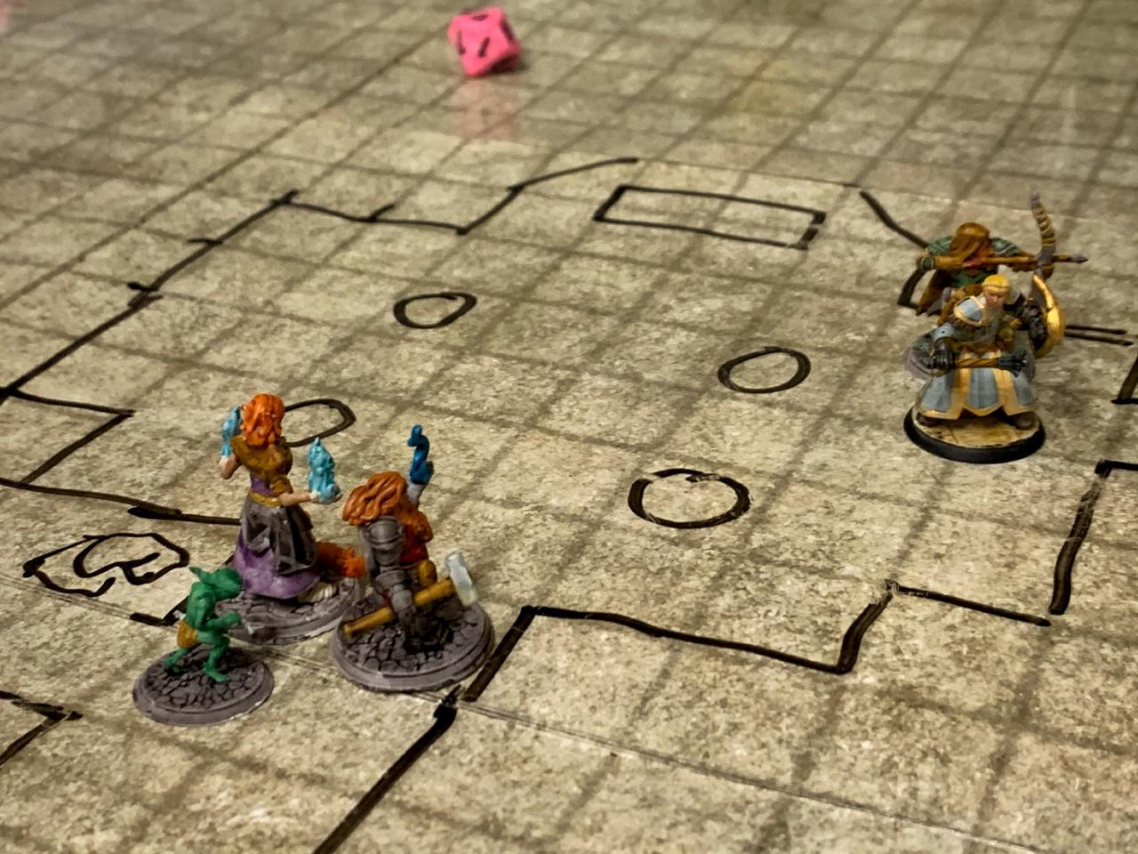 A fight breaks out, with the party trying to carefully manage the attacking jelly and the stationary one.