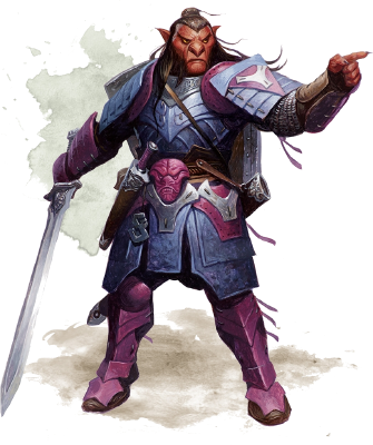 One of them is an imposing figure, a clearly older hobgoblin with a commanding presence.